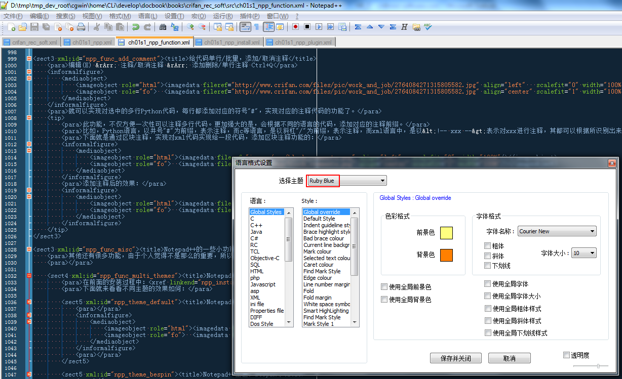 3.18.12. Notepad++主题: Ruby Blue