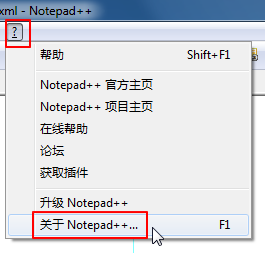 Notepad++中,点击:? → 关于Notepad++...F1