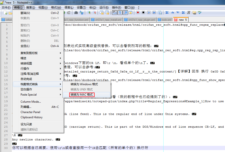 3.13. Notepad++中Windows,Unix,Mac三种格式之间的转换