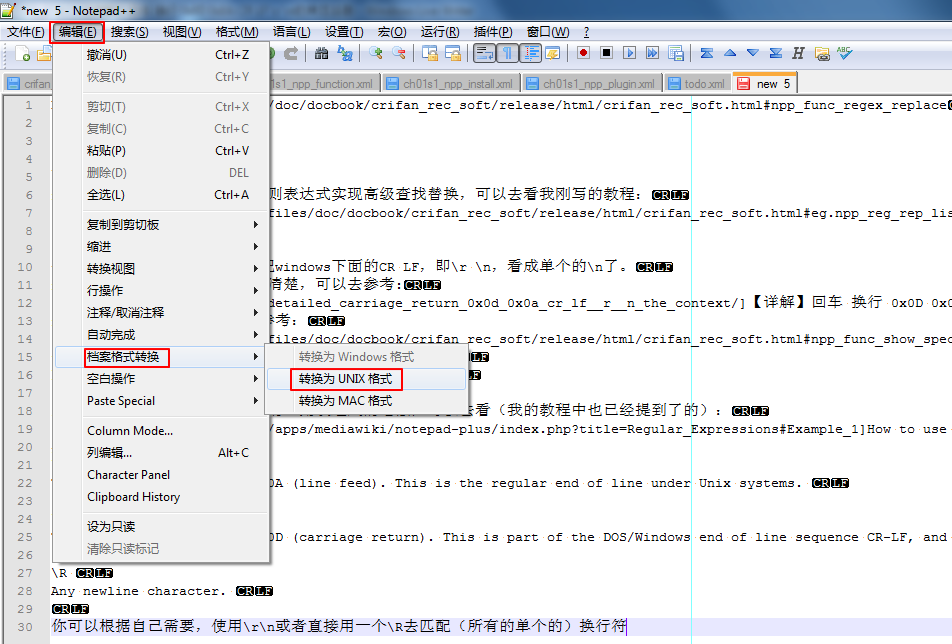 3.13. Notepad++中Windows,Unix,Mac三种格式之间的转换