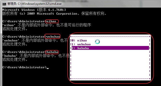 其实,默认的通过键盘上的上线箭头,可以输入之前/后输入过的命令的。