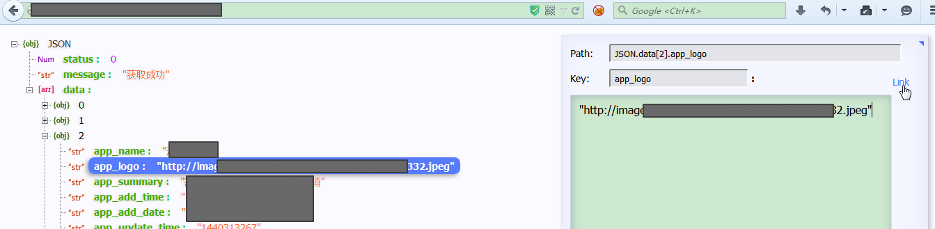 8.对于json值里面有图片的,点击link还可以查看图片: