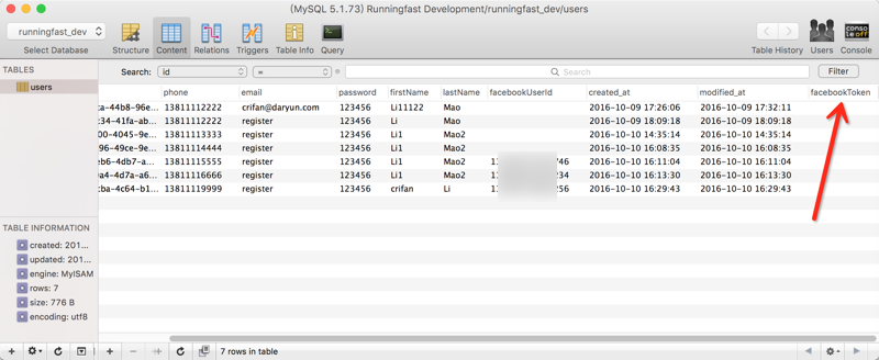 给User多加一个字段facebookToken试试