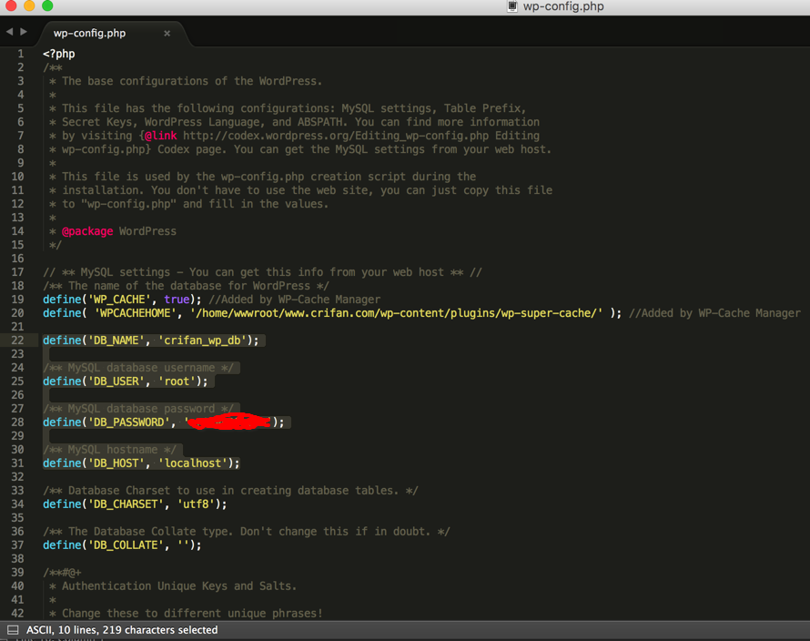 define(‘DB_PASSWORD’, ‘数据库的密码’);