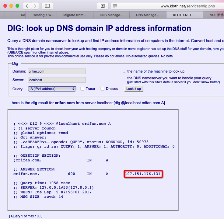 KLOTH.NET – DIG – DNS lookup – find IP address