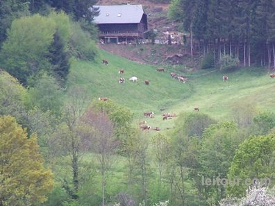 南部黑森林,从弗赖堡到瑞士边境。风光很似瑞士,山间的草地渐多。树林不再连成大片,树林间的山坡被辟出草地牧场,用于放牧。