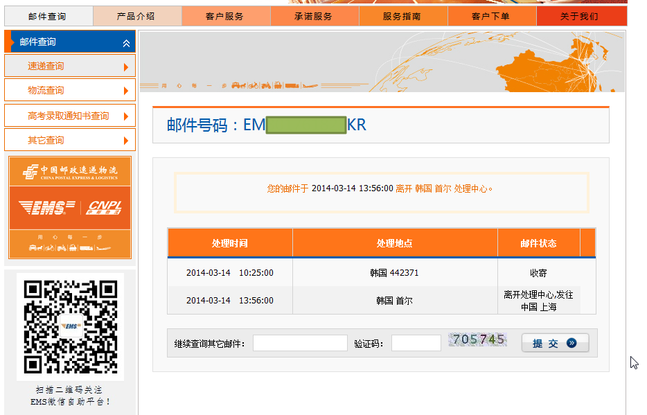 此阶段,属于EMS把东西从Gmarket韩国总部,寄送到中国国内