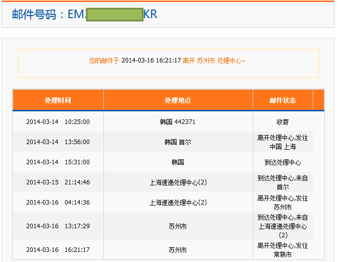 我此处看到的是是送到国内的上海的(好像是Gmarket,还是EMS的总部?)