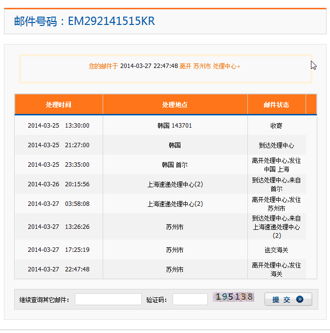 然后就可以通过EMS官网去查询EMS单号,看看物流情况了: