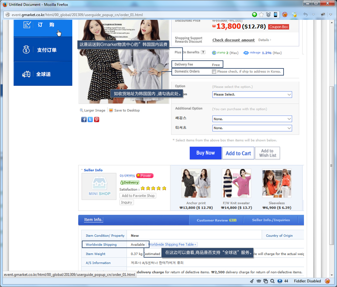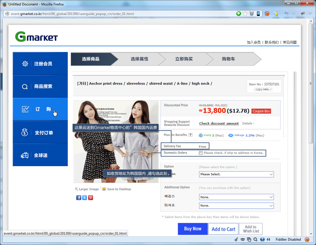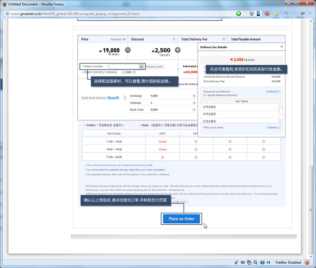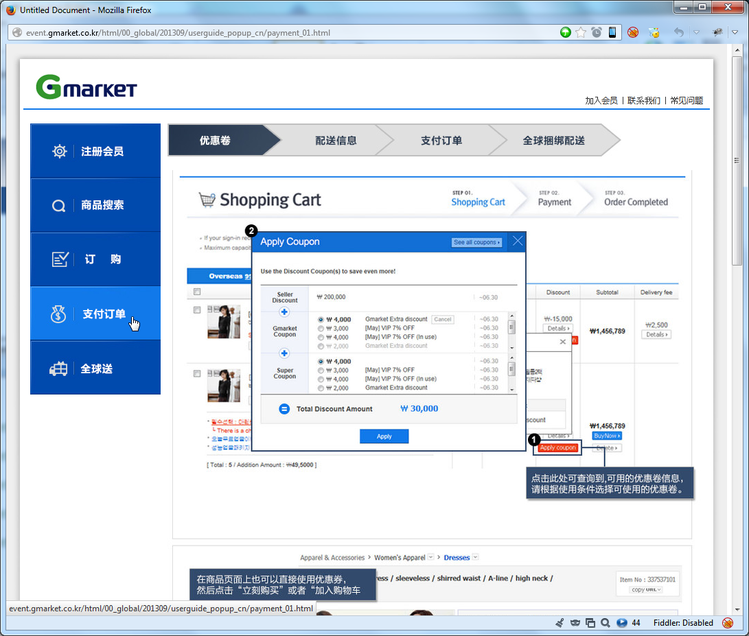 点开可以看到详细的官方解释的Gmarket购物流程: