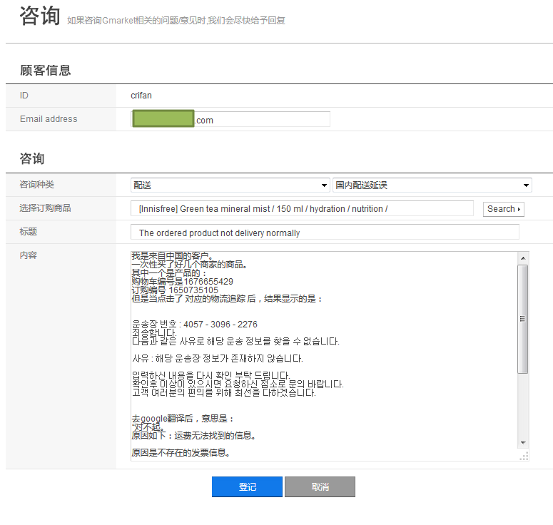 不过后来发现,Gmarket处理投诉和咨询的效率还是很高的:
