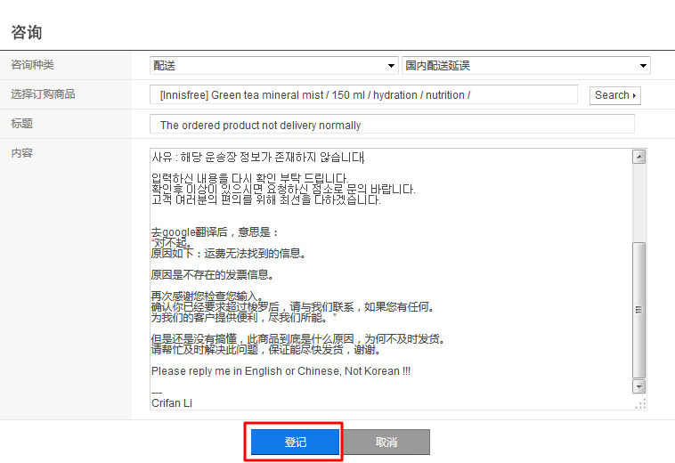 转载请注明:在路上 » 【记录】通过Gmarket客服反映已购买的个别商品的韩国国内配送出了问题