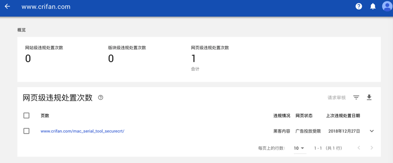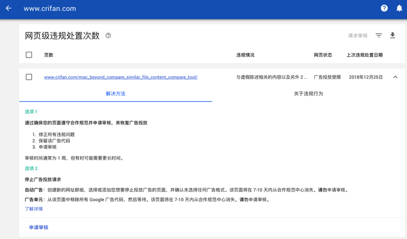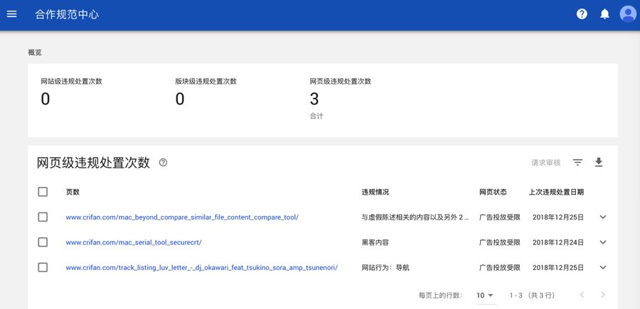 提示我,有违规的网页: