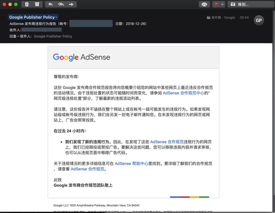 之前断断续续收到很多个,google Adsense发来的邮件: