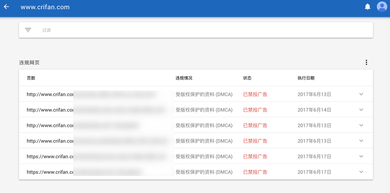 AdSense 发布商违规行为报告(帐号:pub-6626240105039250,日期:2017-6-10)