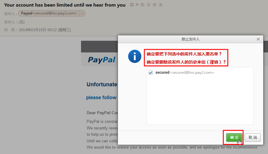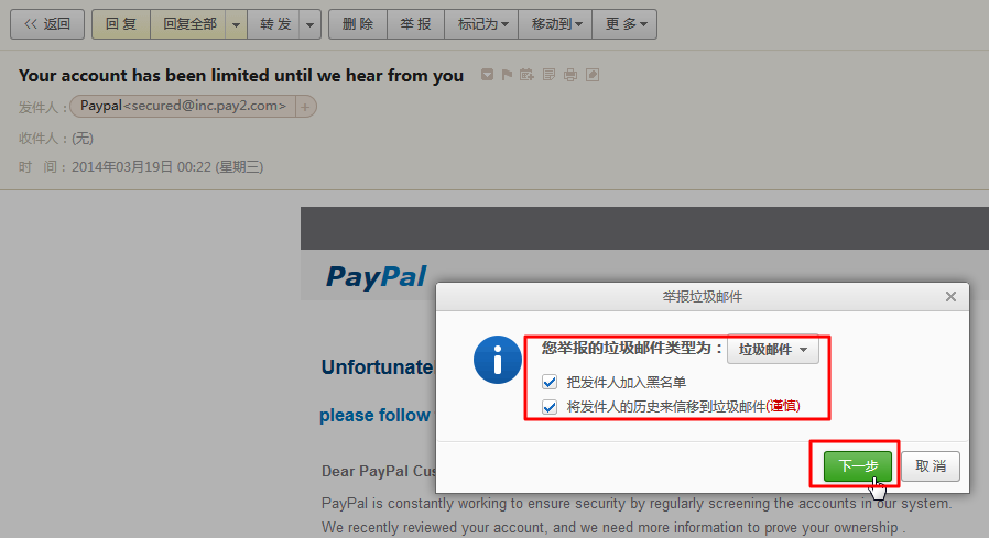 提到了,这个是钓鱼邮件,是网络诈骗。