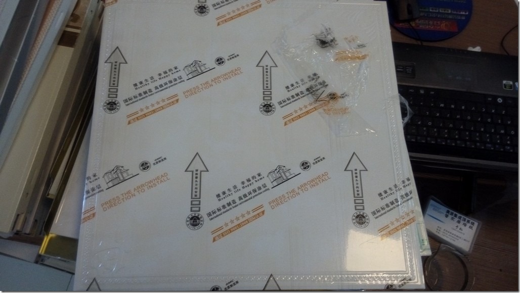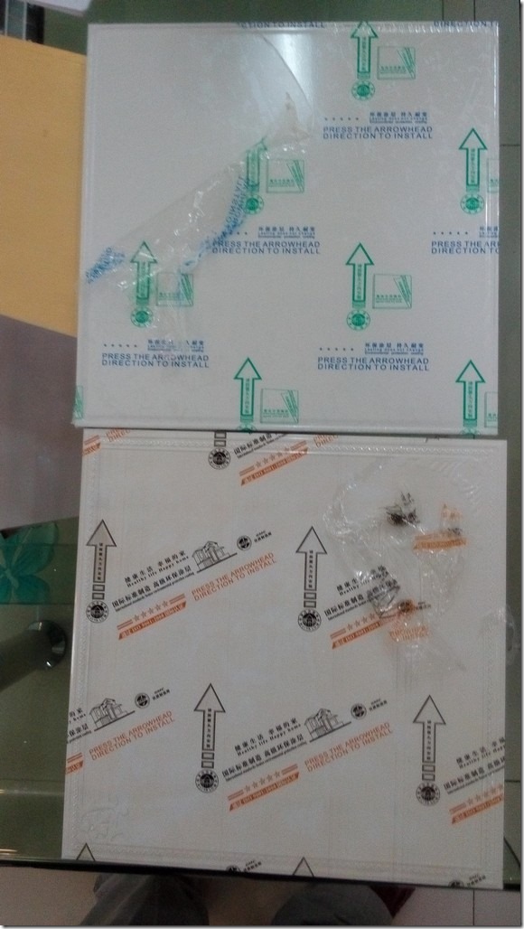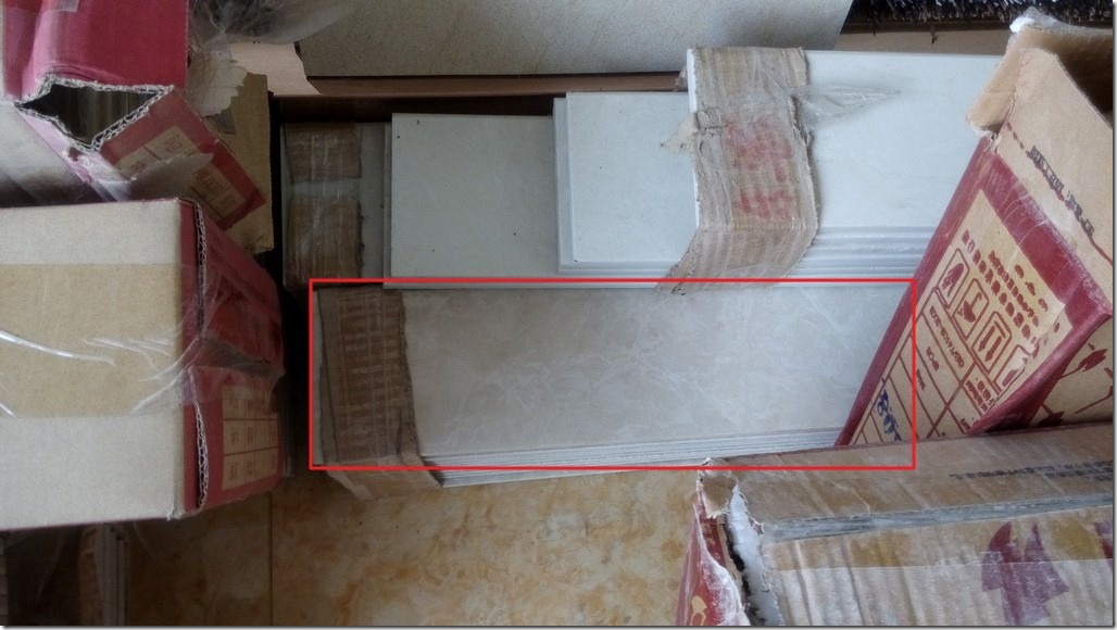 为了保险起见,店主再送一块给我(但是由于那个米黄偏白的只有剩下的10片了,所以额外再找一平,只有找个相近的颜色了->可以铺在边角处,也没啥影响的)