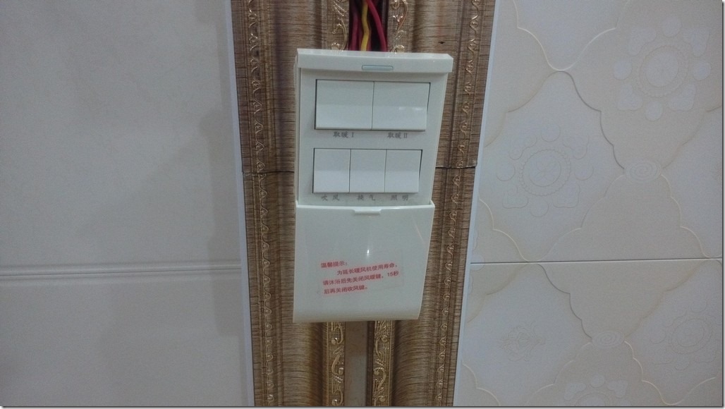 经过询问,发现大部分的其他业主,也都还是选择把暖风机装在淋浴房内,少数人才把暖风机装在淋浴房外面的。