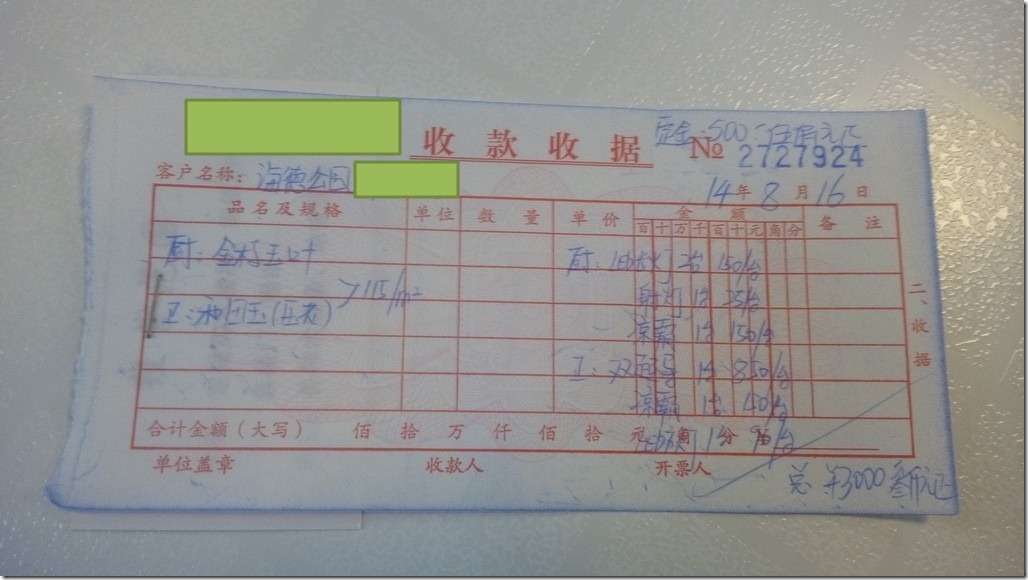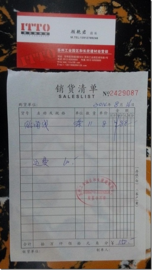 阳台踢脚线订单收据