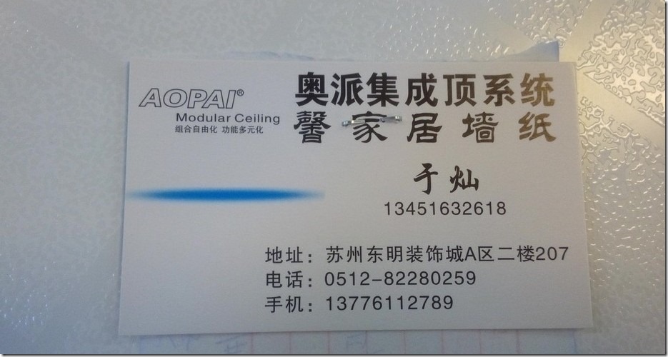 加上电话问过了那人,问了大概的暖风机和吊顶的价格,觉得也不便宜,所以决定自己去东明定那家我之前去看过一次的那个集成吊顶:奥派集成吊顶。