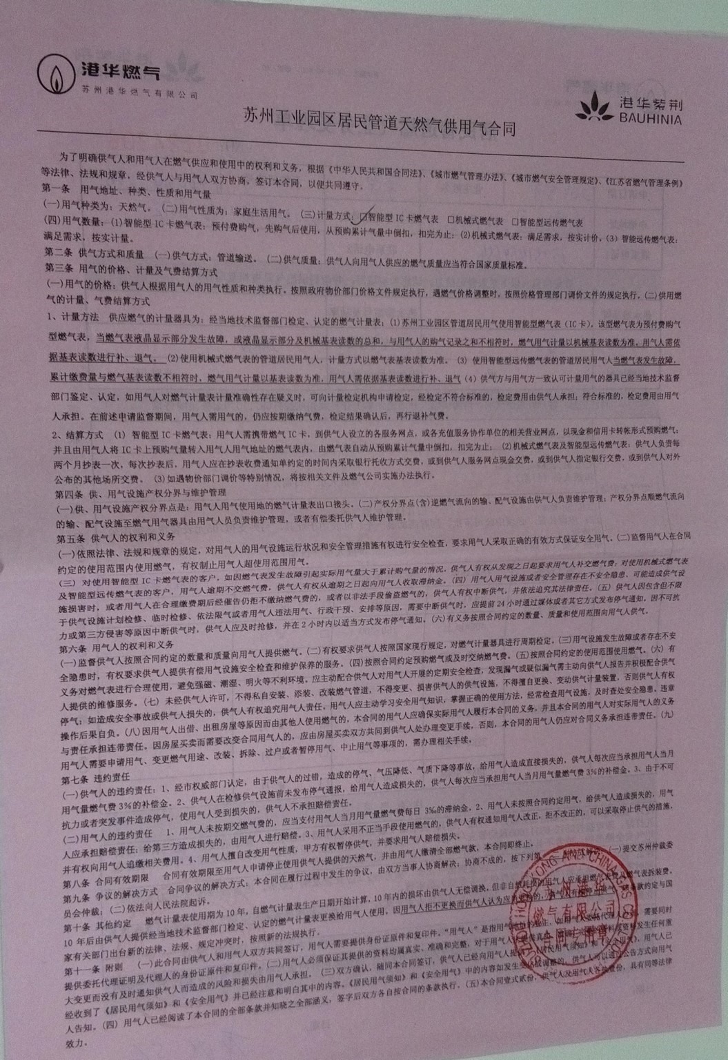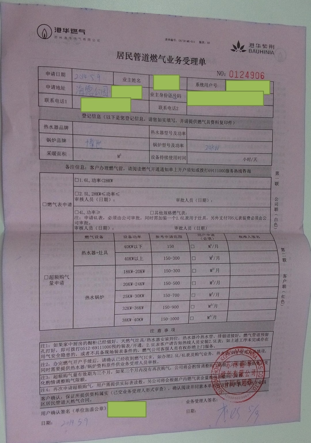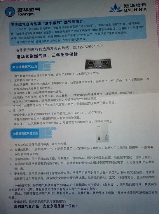 (那张蓝色的港华燃气)燃气开通通知单