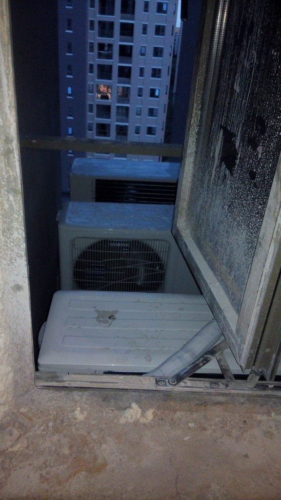 2.把靠淋浴房南面的窗户的空调外机抬高,低于窗户高度;