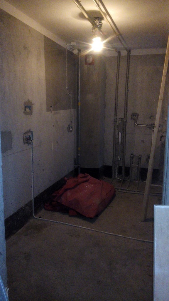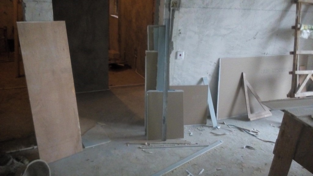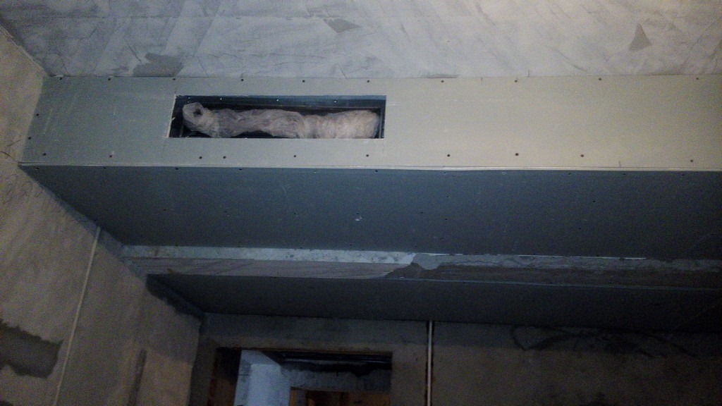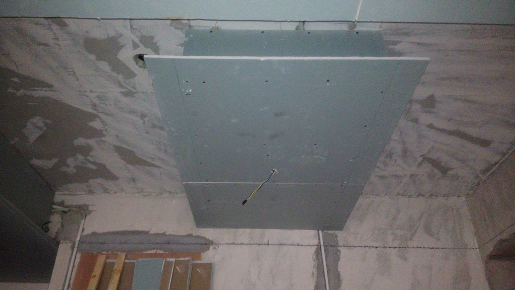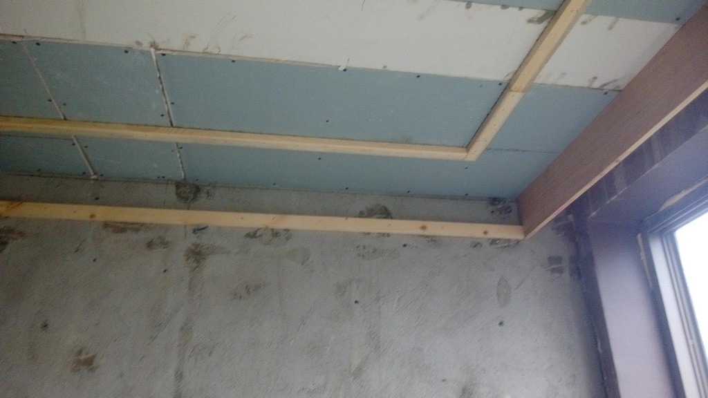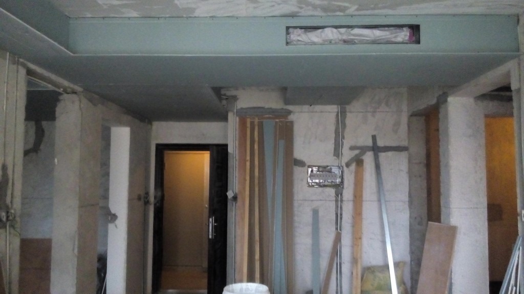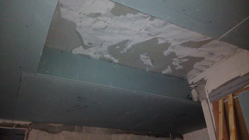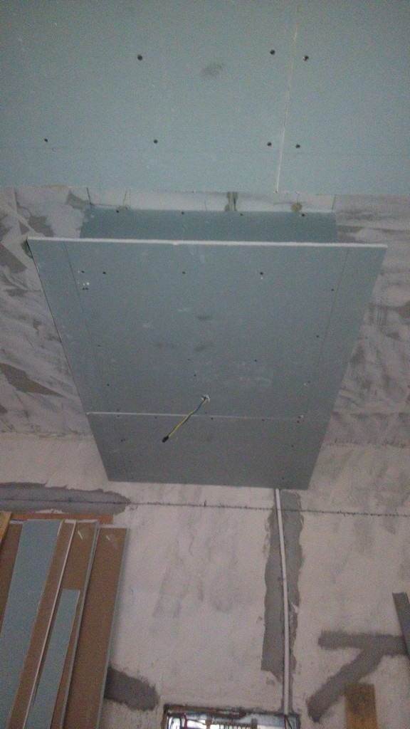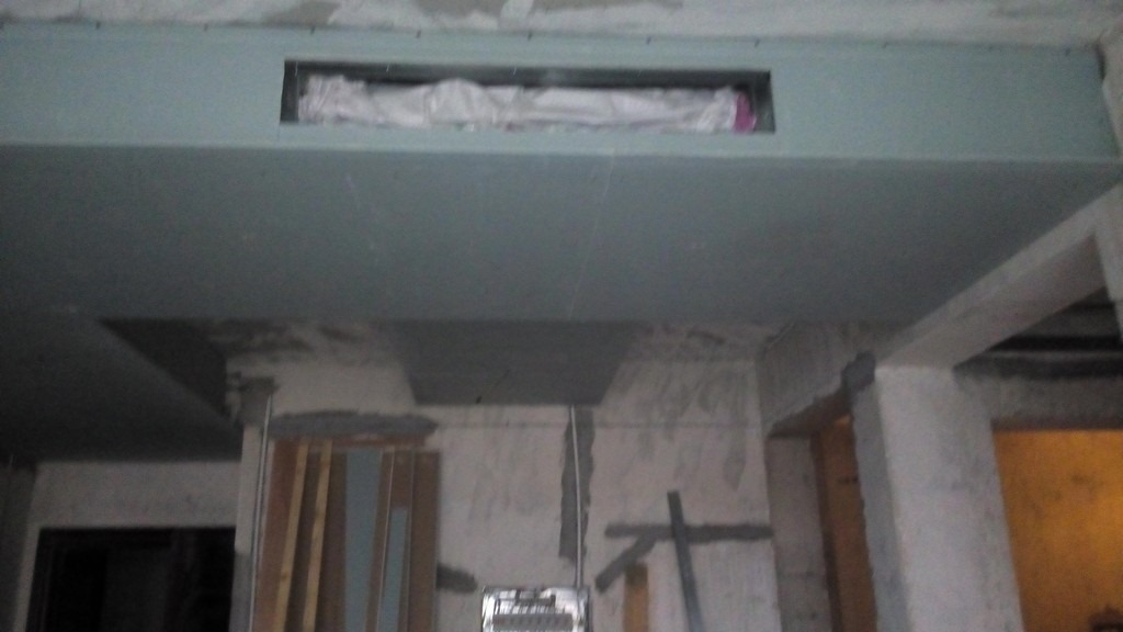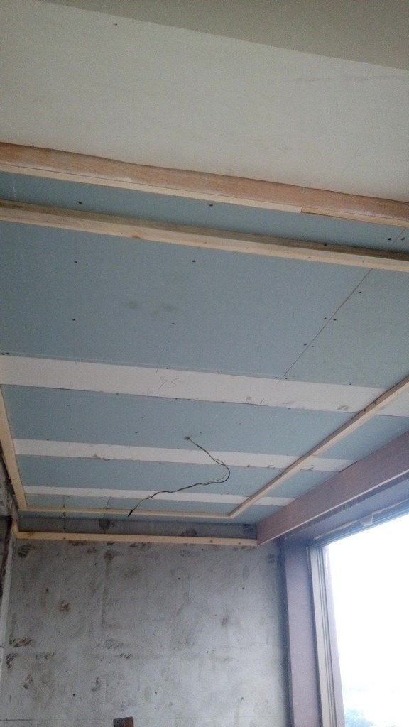 现在继续吊顶,已经用石膏板封了大部分的地方了。