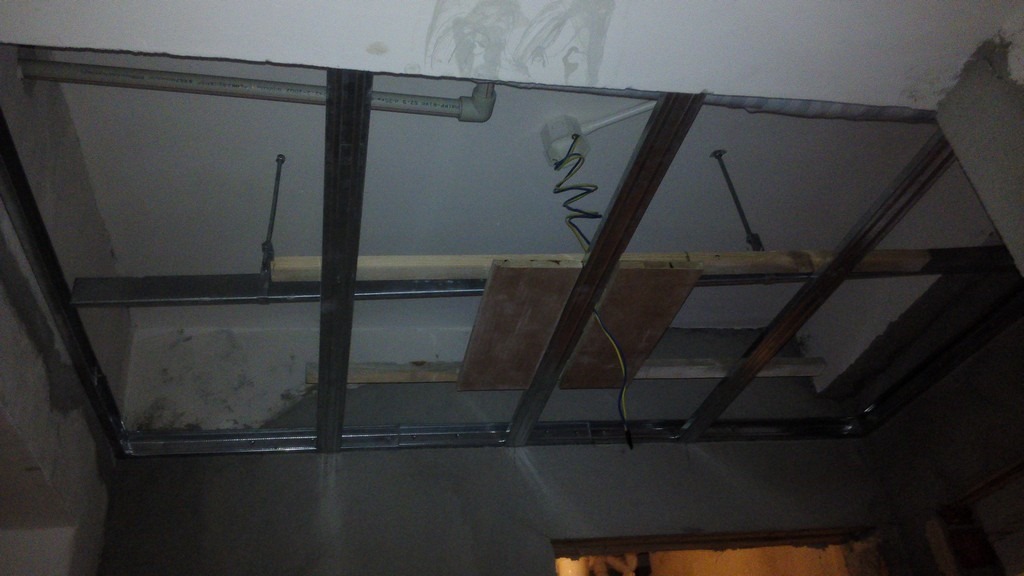 之前已经完成吊顶骨架,并且封了部分的石膏板: