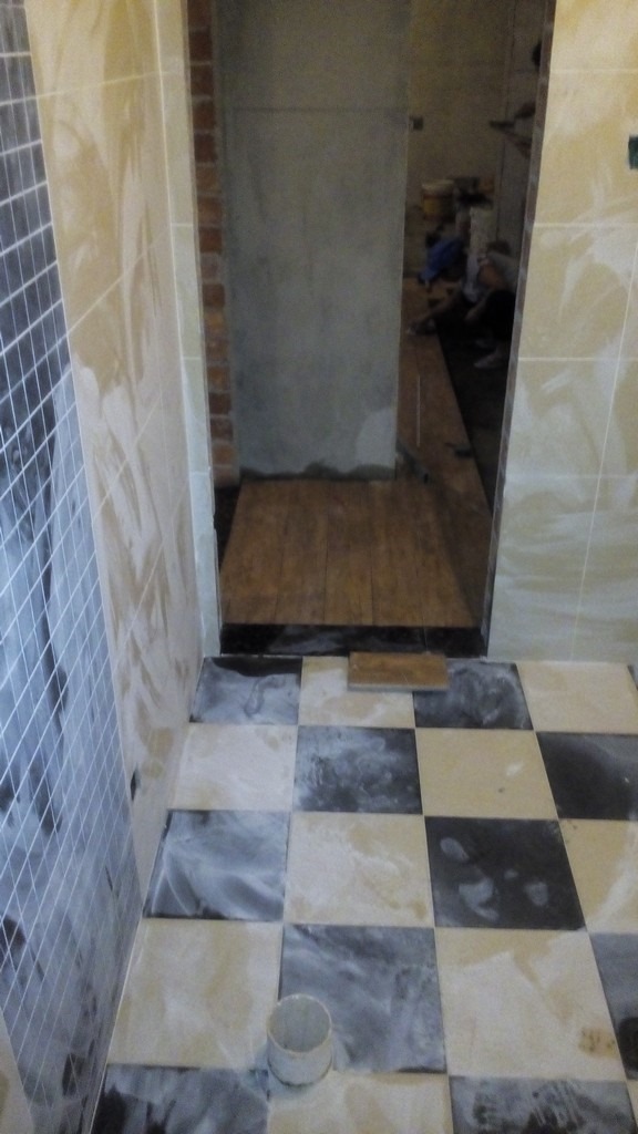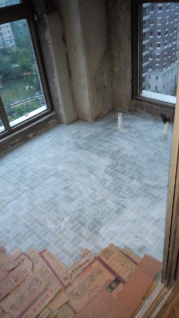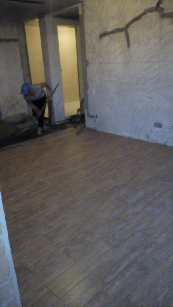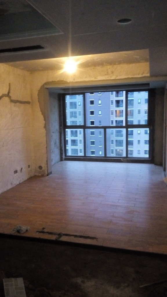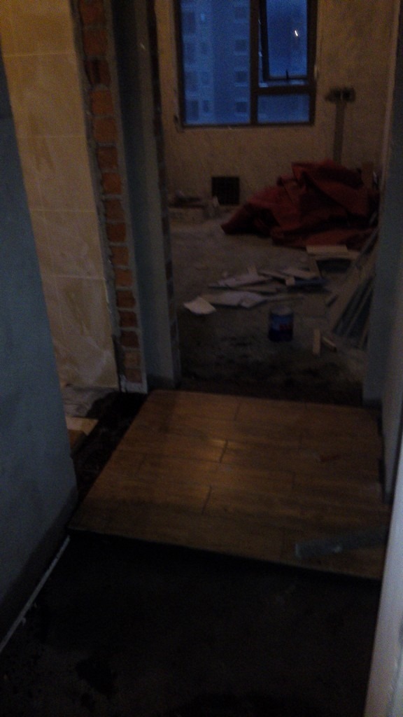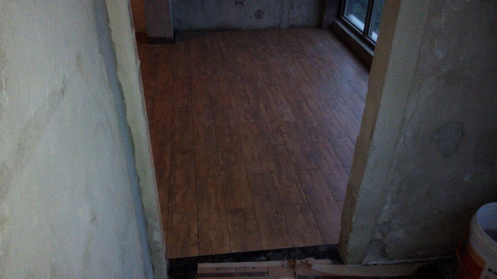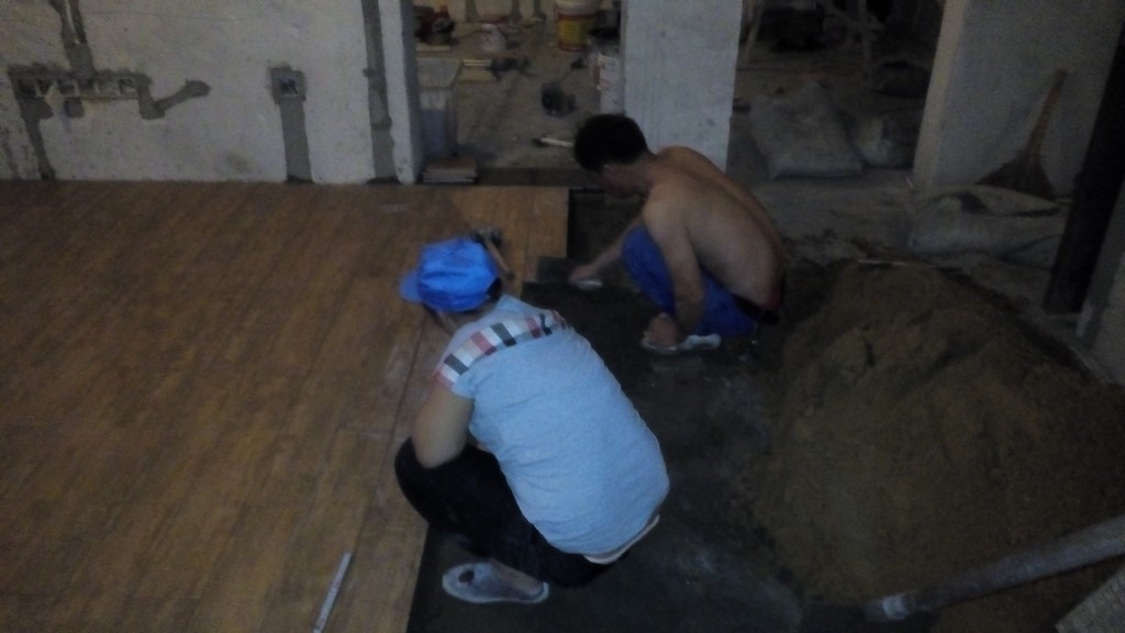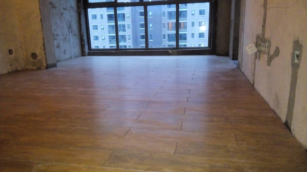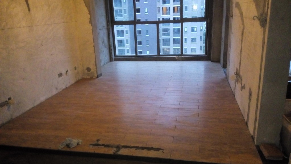 现在,客厅的罗马安特的木纹砖,基本快贴好了。