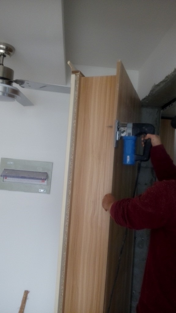 【记录】20141102装修第103天:橱柜衣柜收尾+木门补漆+安装晾衣架
