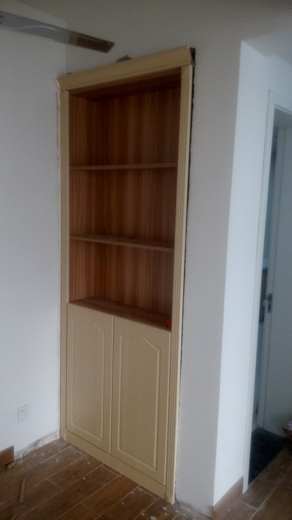 之前是,酒柜基本弄好,塞进去墙里了,但是外面露出太多: