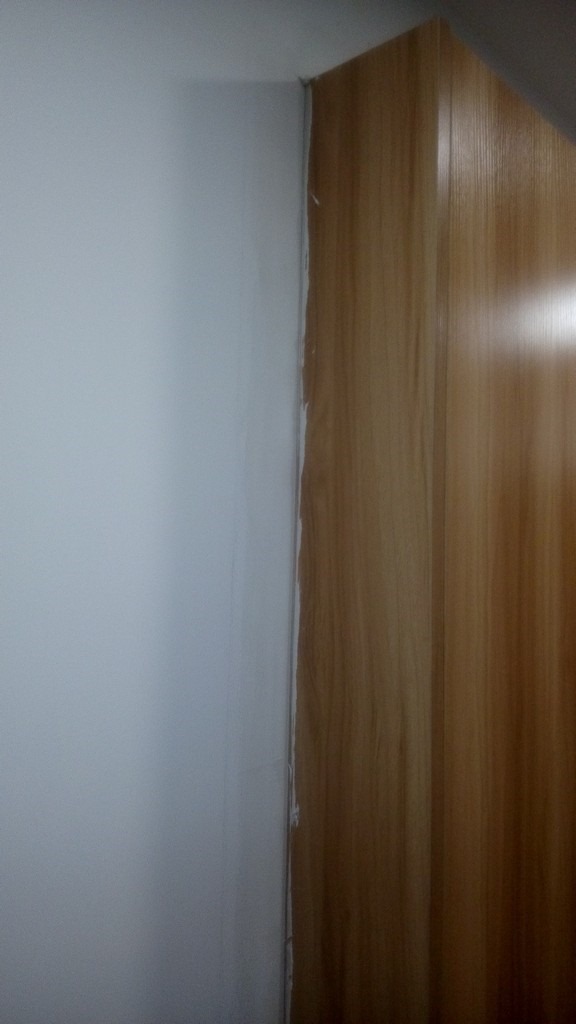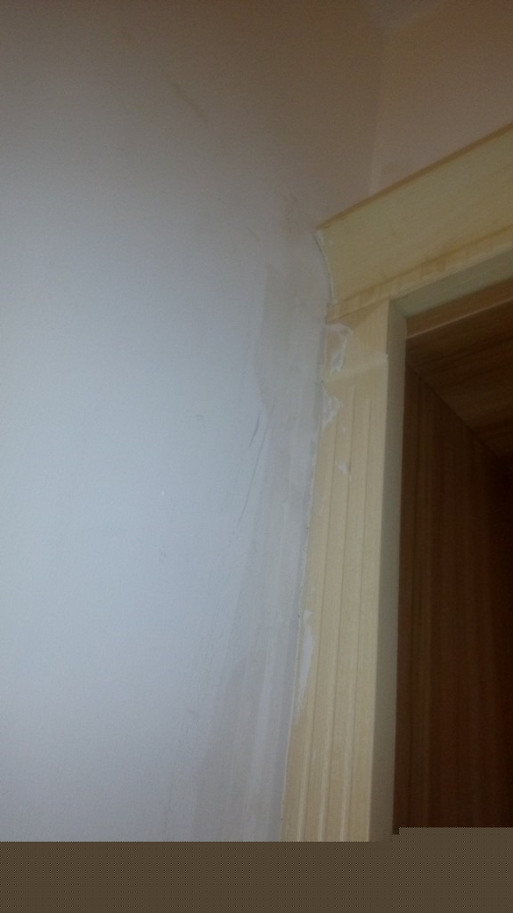 期间,对于各个之前打了泡沫胶的柜子边角缝隙,铲掉,然后打上腻子,对于其他的比如木地板的踢脚线,地砖的地脚线等部分也要去填缝。
