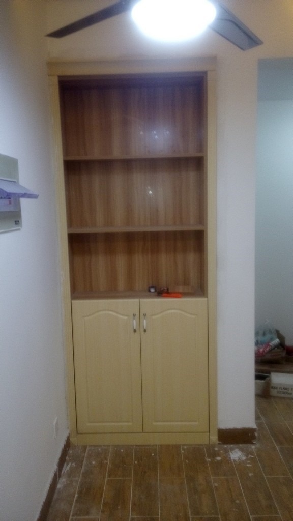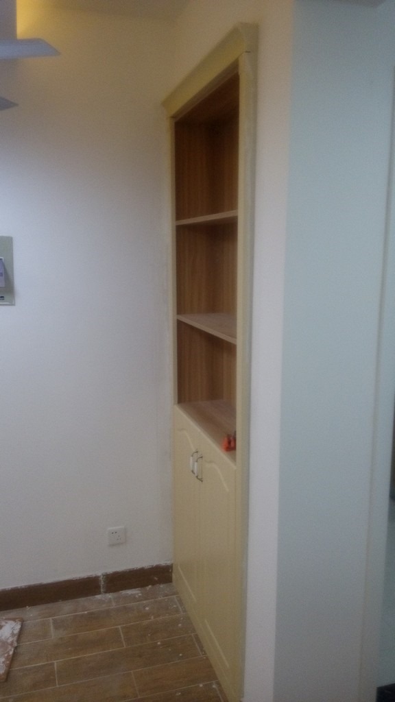 包括把剩余的,尤其是柜子边上的踢脚线,都装上。