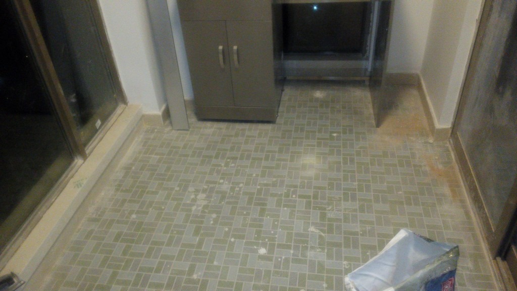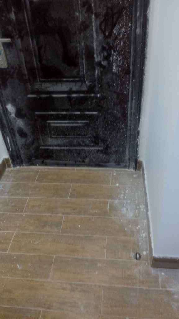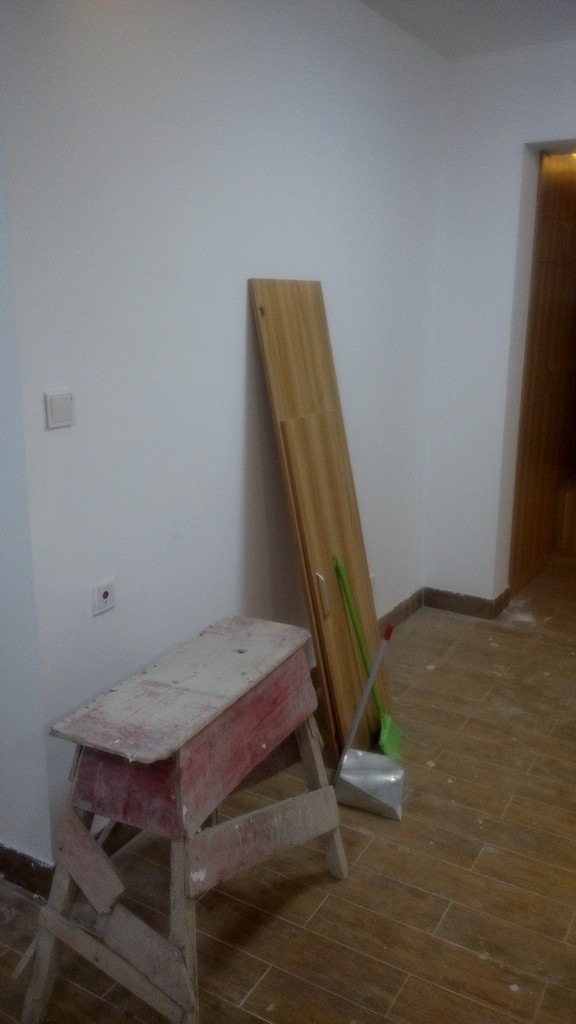 【记录】20141104装修第105天:修补腻子贴剩余瓷砖踢脚线+入户门地吸