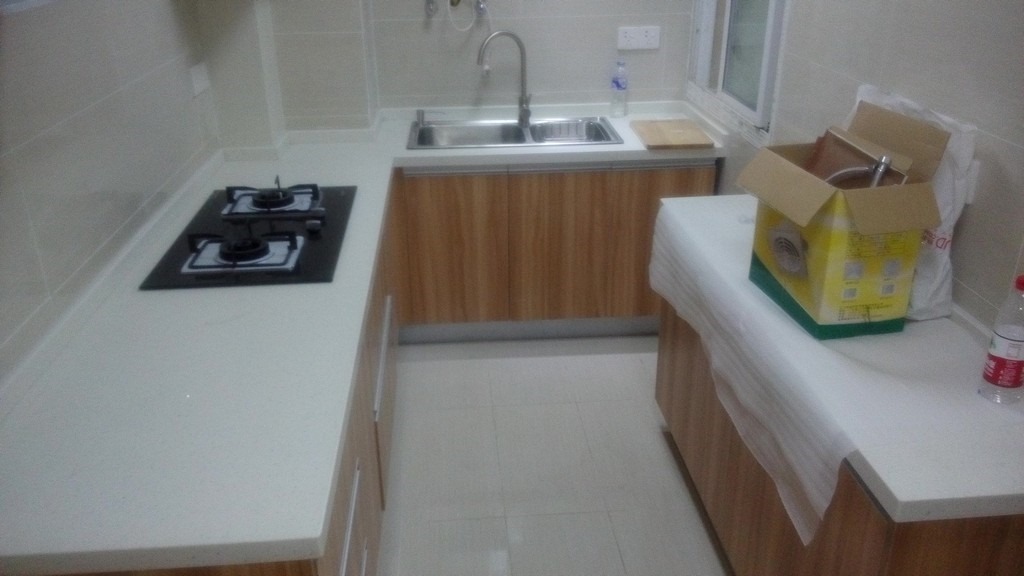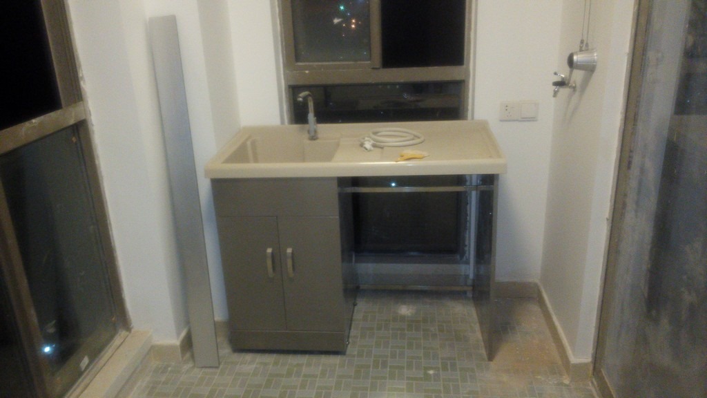 【记录】20141103装修第104天:水槽安装+泡沫胶修补柜边