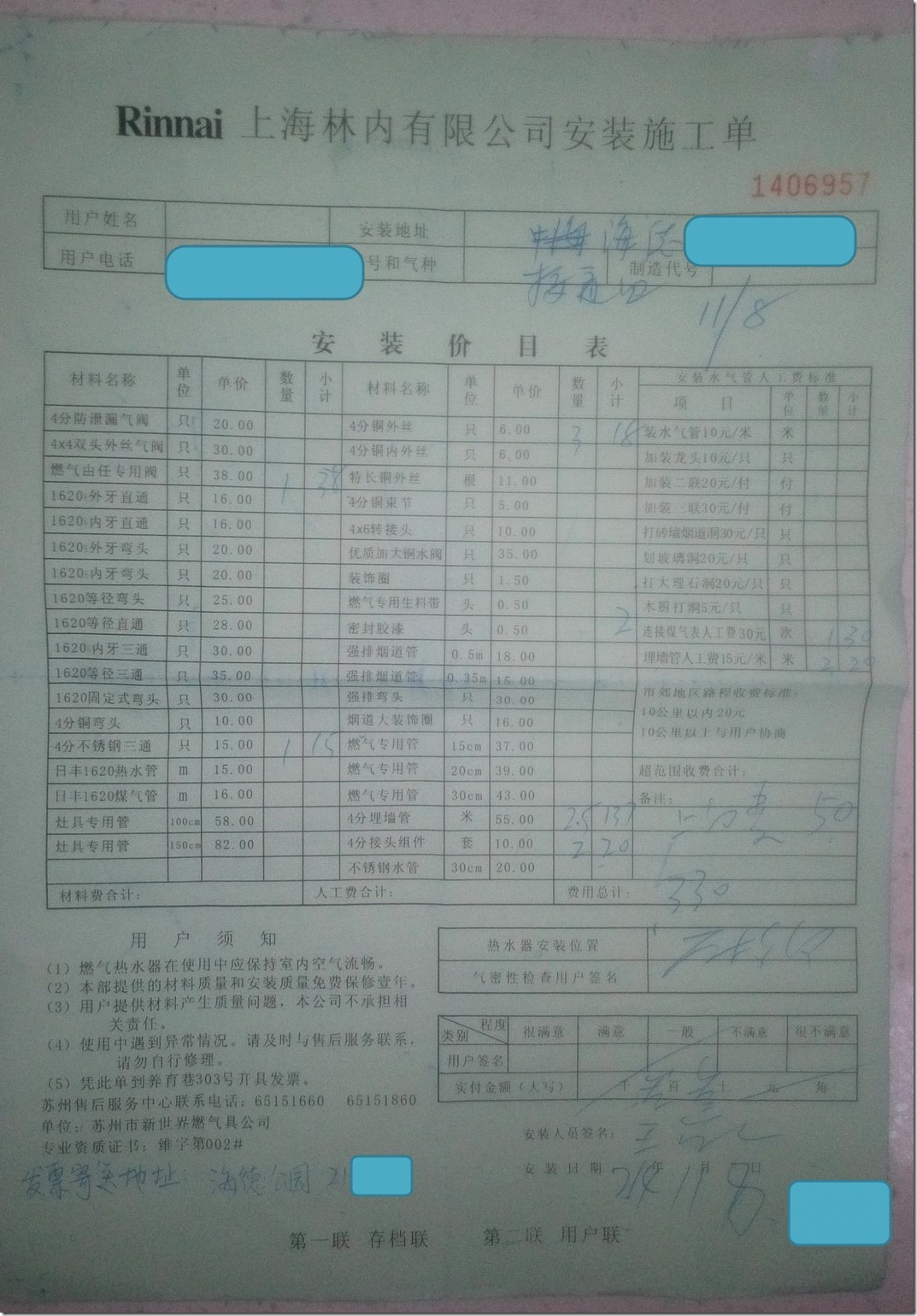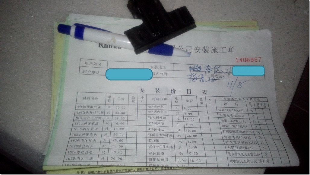 【记录】20141101装修第102天:燃气热水器挂好后找港华开通燃气但是还是不给开通的过程