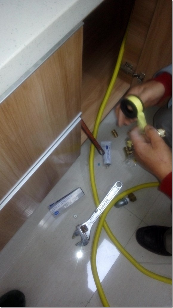 后,无奈之余,只好找林内的售后师傅来给我安装燃气管。