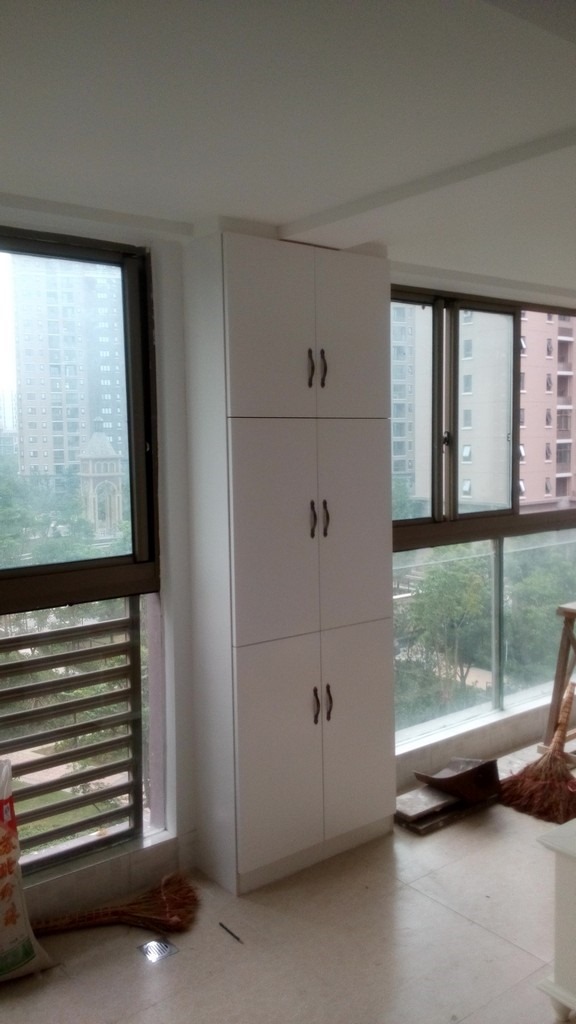 好处是,边上做了很多柜子,增加了很多储物空间。