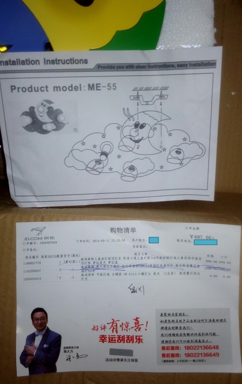 其中的吊扇灯,前两天已经送货到家了。