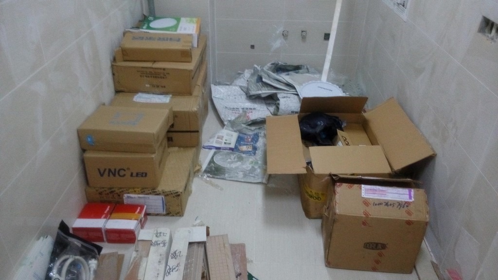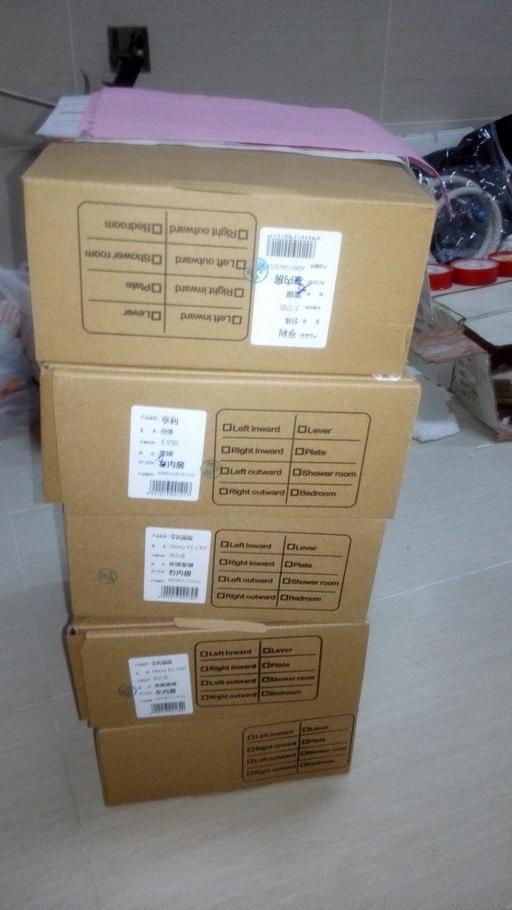 2014-09-18,装修第58天,收快递,是一大箱的九牧的卫浴五金件,加上多灵的门锁,门吸,合页。