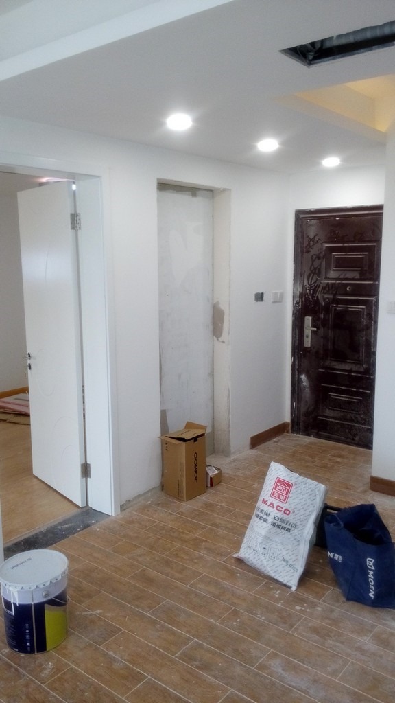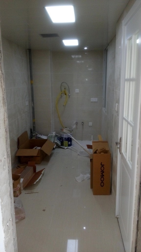 【记录】20140927装修第67天:安装剩余开关面板+卫生间马桶淋浴房台盆柜卫浴五金+风管机封口+阳台洗衣柜+木纹砖和阳台踢脚线