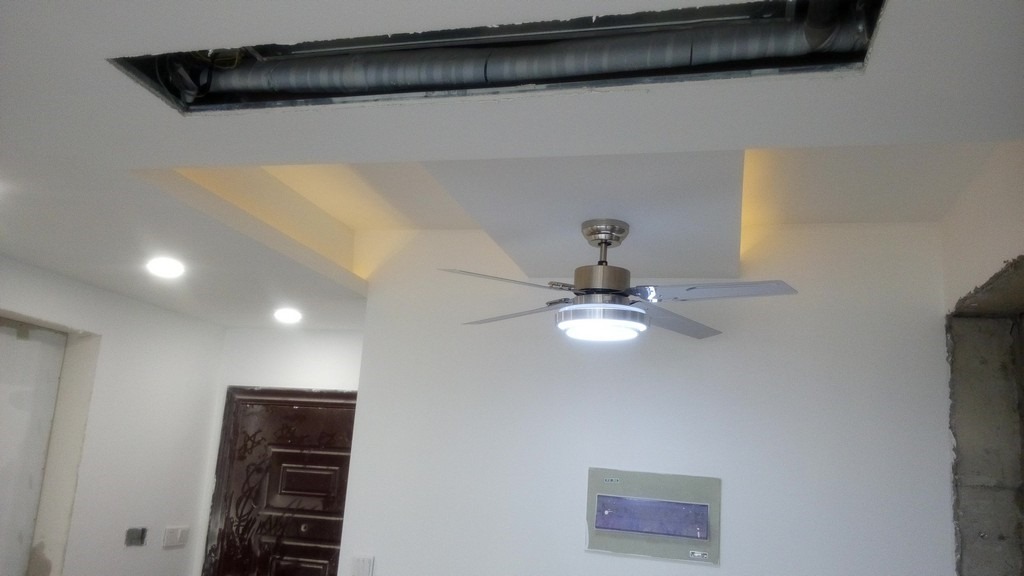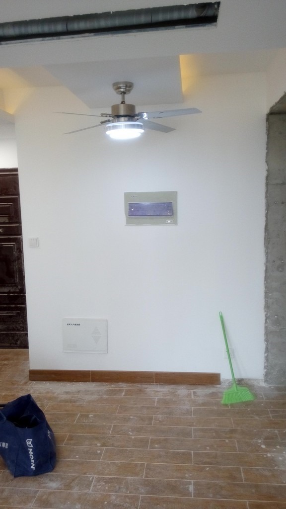 我此处的灯,是有开关的,但是电扇,是只有遥控器去开关的->后来才知道,其实那种带拉绳的电扇灯会更好->不仅不会不美观,两根绳对称的也很好看,最主要是方便和实用,尤其是万一遥控器丢了或坏了,就没法控制电扇了。。。
