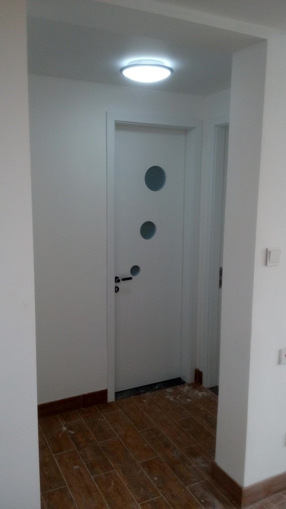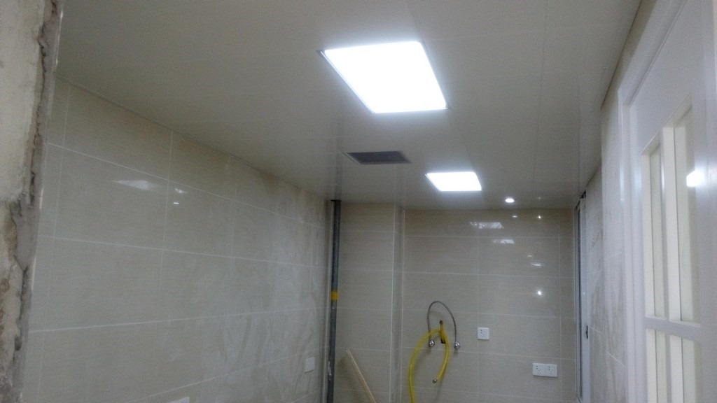 淋浴房外,卫生间的干区,上面本来是300×300的小方灯,觉得亮度不够,所以换了300×600的大点的方灯,这下灯光好多了。