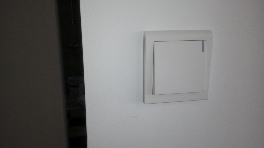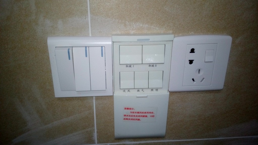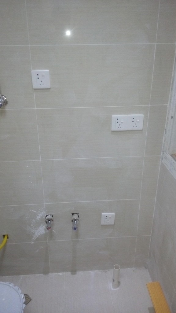 【记录】20140927装修第67天:安装剩余开关面板+卫生间马桶淋浴房台盆柜卫浴五金+风管机封口+阳台洗衣柜+木纹砖和阳台踢脚线