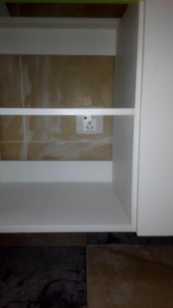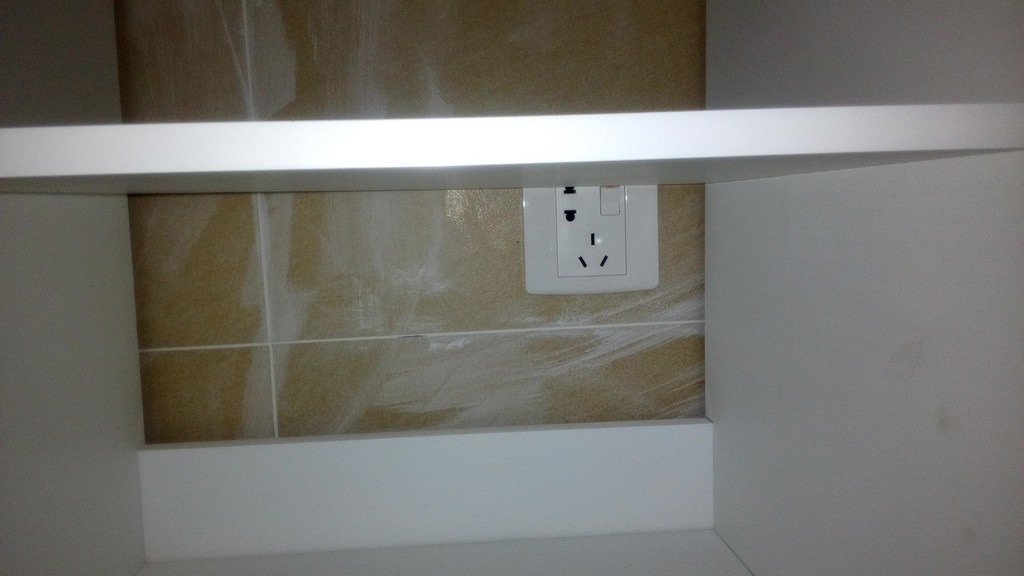 但是项目经理施工时,竟然没有拿到最新的橱柜方案,就开始施工了:导致插座在下面,而不是在上面。。。