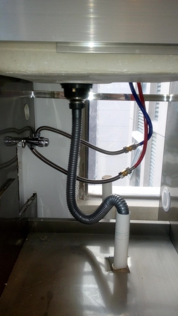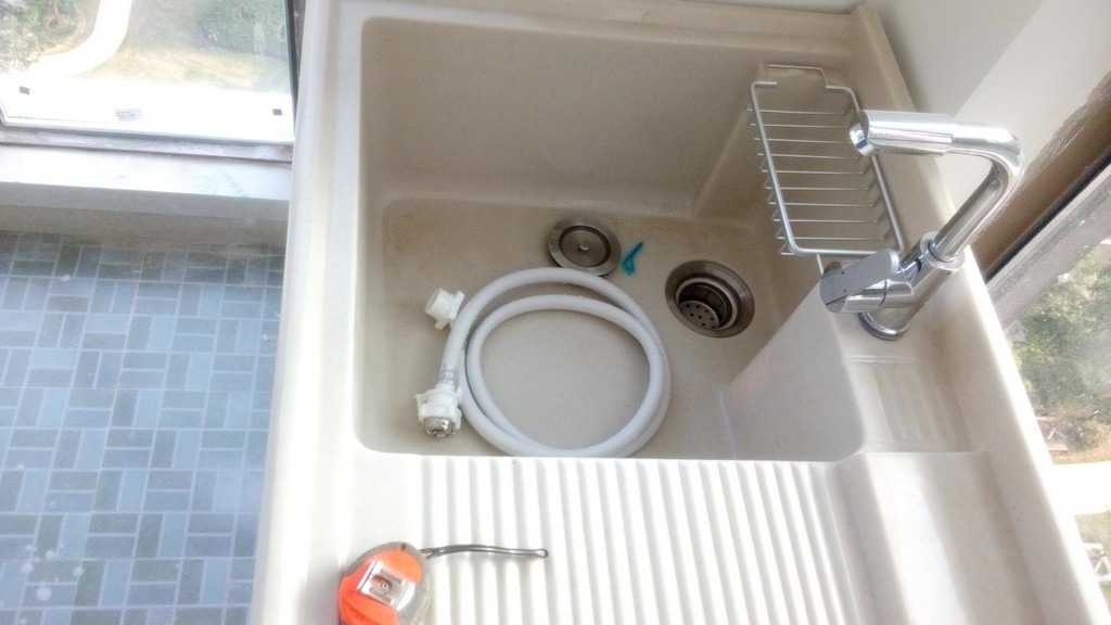 而洗衣池部分的下水管,直接就是接到地面延伸出来的排水管即可。