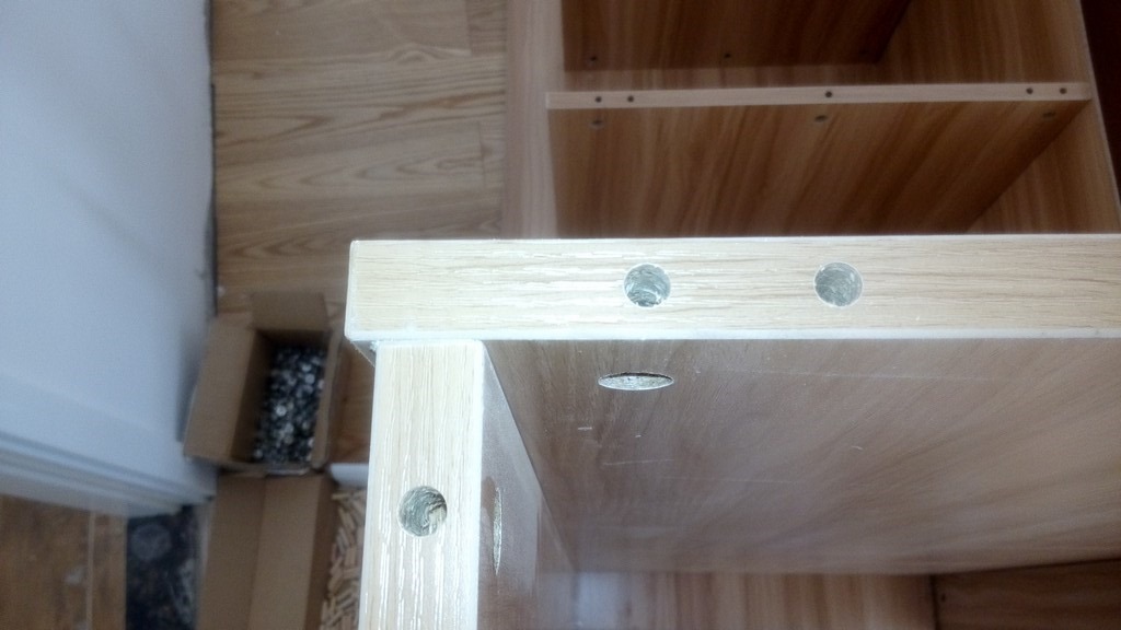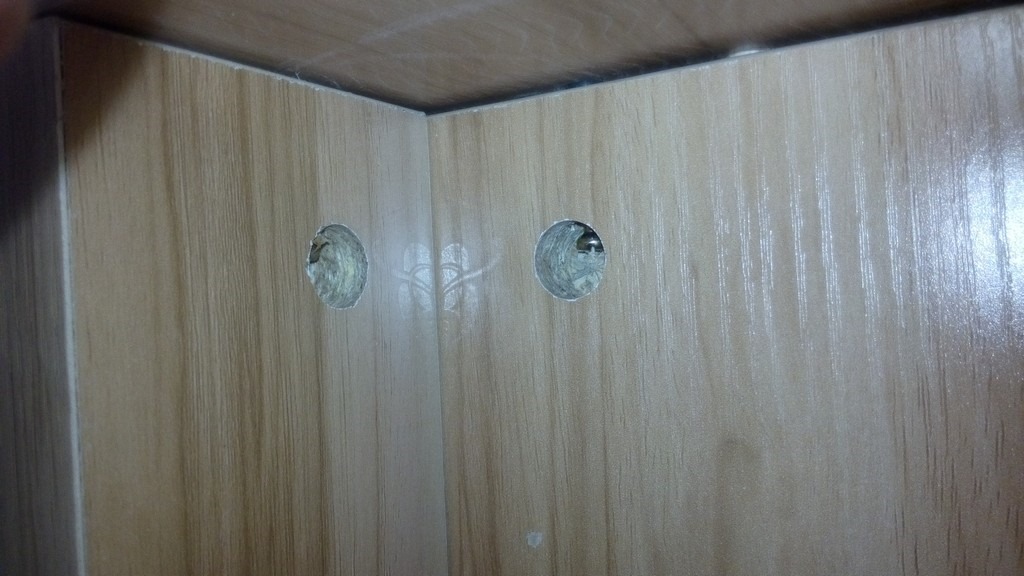 再次给用于上膨胀螺丝和固定螺丝的那两个想通的孔,一个特写: