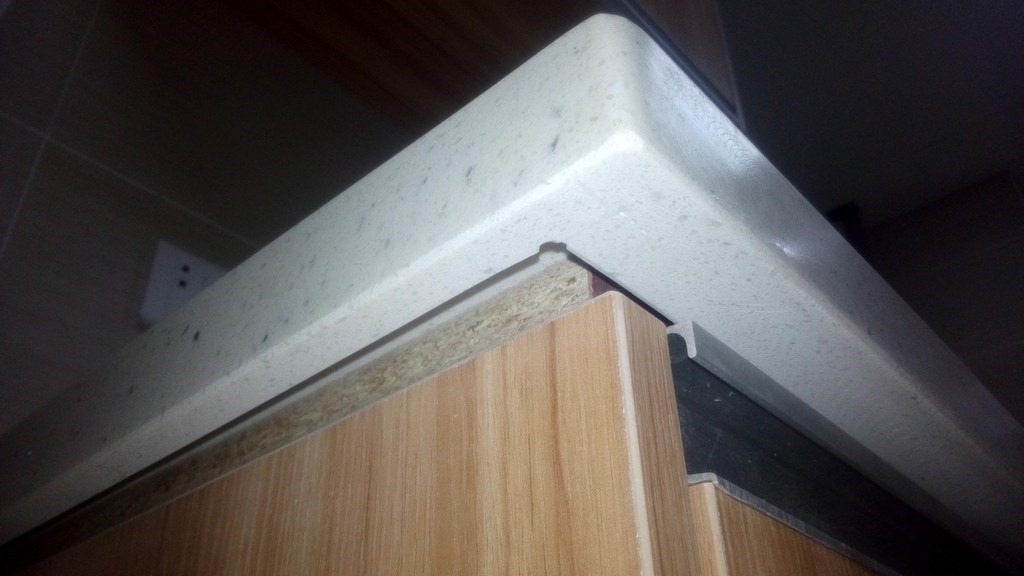 那么就用这个大理石封边吧,大理石肯定比颗粒板封边要好了。