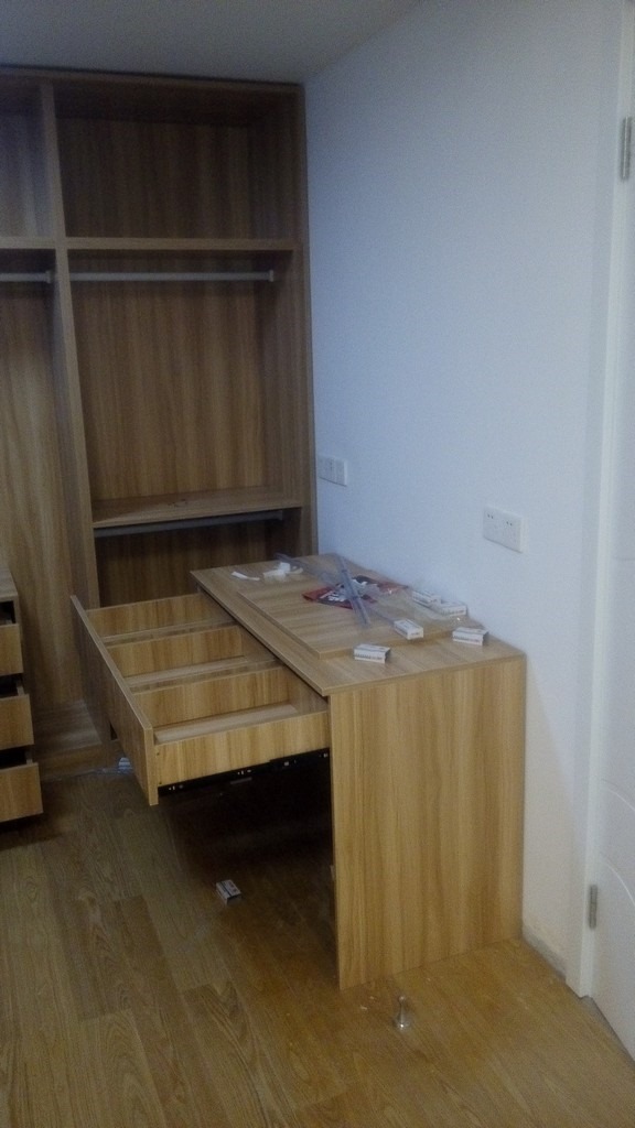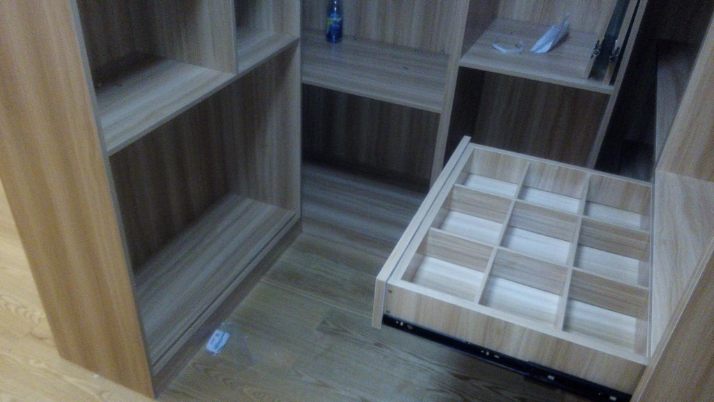 【记录】安装完成主卧衣帽间的小东西:衣柜的抽屉,格子架,裤架,书桌的抽屉
