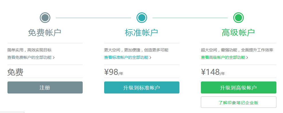 免费帐户 | 标准帐户 | 高级帐户 | 印象笔记企业版 | |